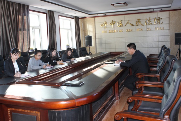 图为:诉讼服务中心王主任为新录入公务员讲解书记员技能